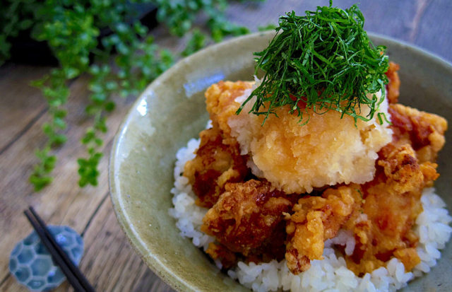 間違いない美味しさ♪おろしポンズの唐揚げ丼です♪(調理時間5分 / 1人前670kcal)