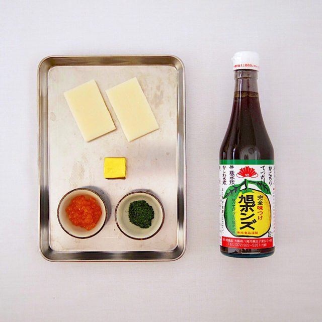 2.両面に焼き目がついたらバターとポンズを入れて絡めたらできあがり。