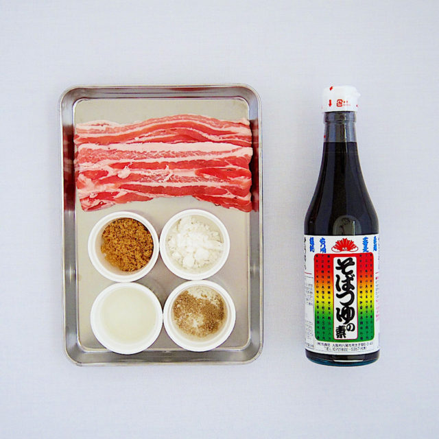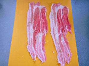 1.豚バラ肉は広げて塩コショウする。