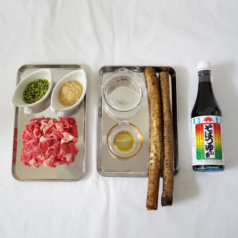 1.ごぼうは皮をこそぎ、斜め切りにして水に浸けておく。牛肉も食べやすい大きさに切っておく。