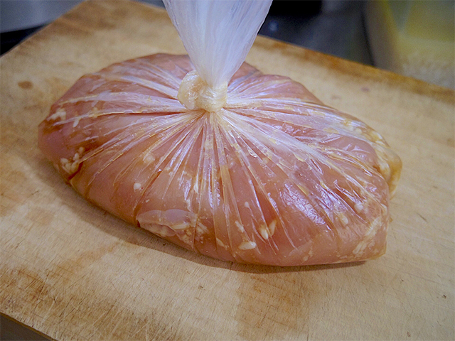 3.ビニール袋の空気を抜いて口をしばり、3時間以上冷蔵庫で放置しておく。