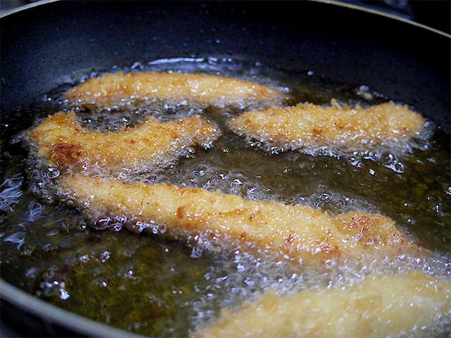 6.フライパンに揚げ油(分量外)を用意し、170度〜180度の油で揚げたらできあがり。