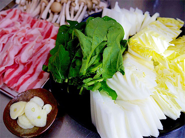 1.野菜、豚バラは食べやすい大きさに切り、ニンニクはスライスしておく。