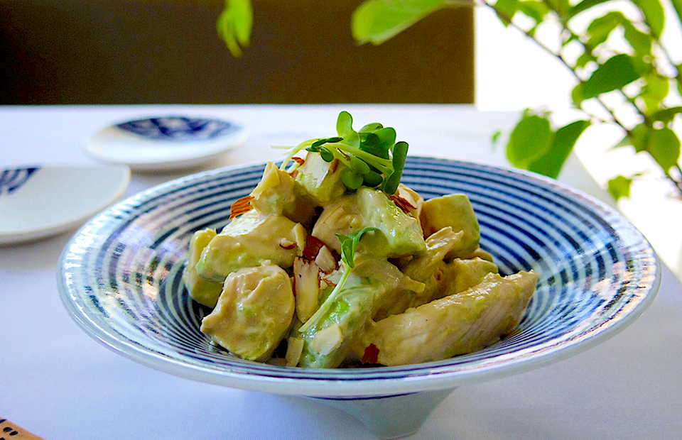 5.アボカドとささみを合わせた調味料に加え、和えたらできあがり。