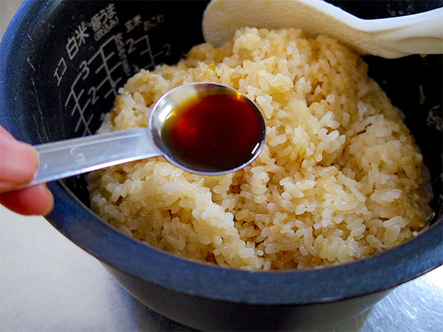 2.炊き上がったお米に、旭ポンズ小1を加えて混ぜる。
