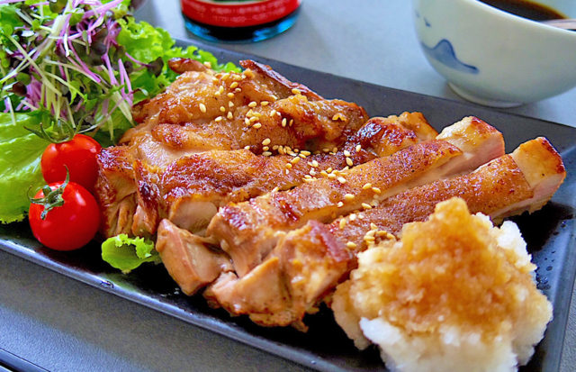 5.大根をすりおろし、鶏肉に添えてポンズをかけたらできあがり。