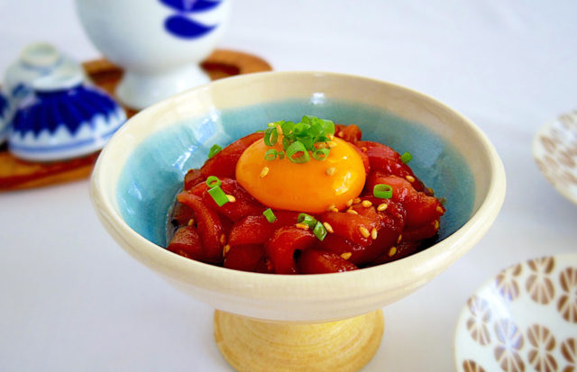 簡単で美味しいタレがアクセントに!マグロユッケです♪(調理時間5分 / 1人前136kcal)