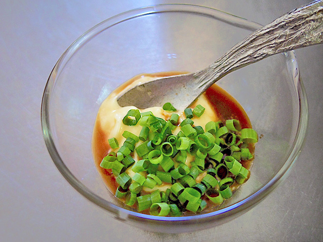 1.刻んだネギと旭ポンズとマヨネーズを混ぜる。