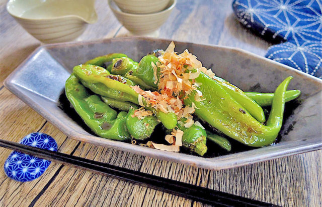 おつまみにも最適!とっても簡単に出来る万願寺とうがらしホイル焼きです♪(調理時間10分 / 1人前14kcal)
