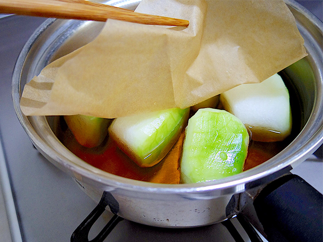 落し蓋をして10分煮たら、火を止めて10分程休ませる。