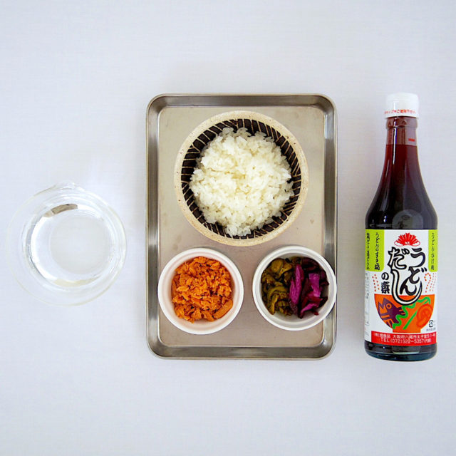2.冷やご飯(炊きたてご飯は熱を冷ましてから)に具材をのせて、出汁をかけたらできあがり。 *冷水がなければ、水とうどんだしの素を混ぜてから冷蔵庫で冷やしても、または氷を入れて冷たくしてもOK。