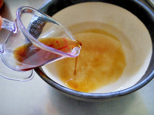 1.冷水とうどんだしの素を混ぜ合わせる。