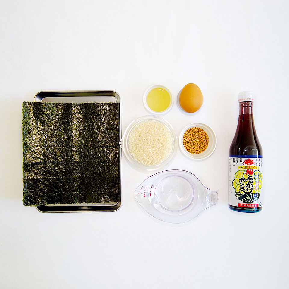 1.研いだお米に1合分の水から大さじ1をひいた水と、大さじ1の旭ぶっかけポンズを加えてお米を炊きます。