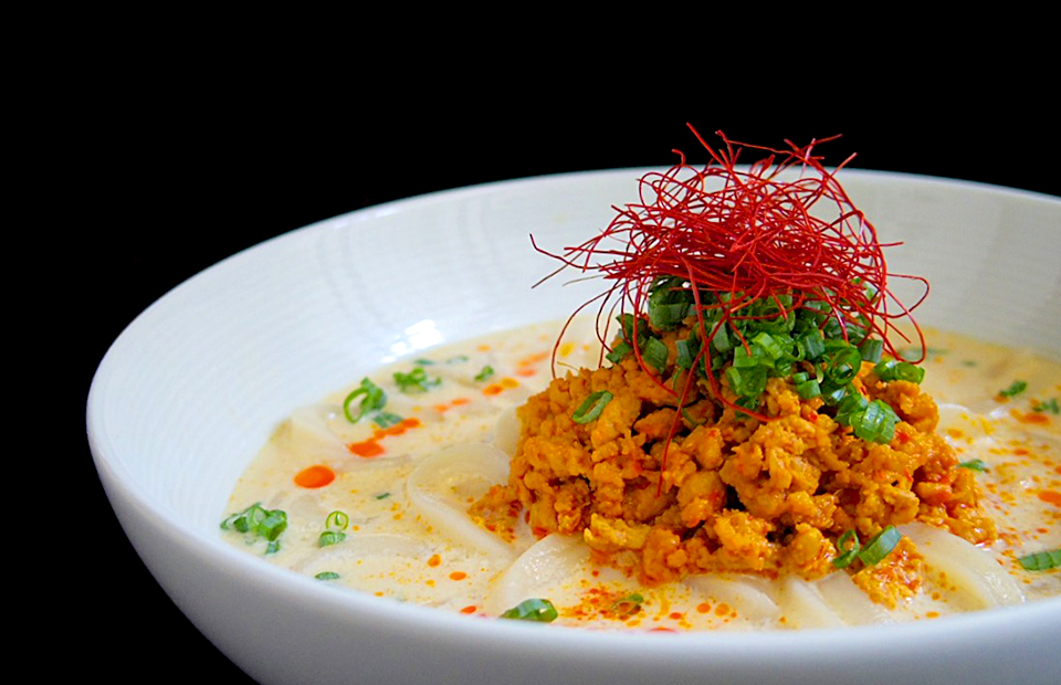 そばつゆの素×ポンズが決め手!豆乳ベースでまろやかに仕上がった坦々風うどん