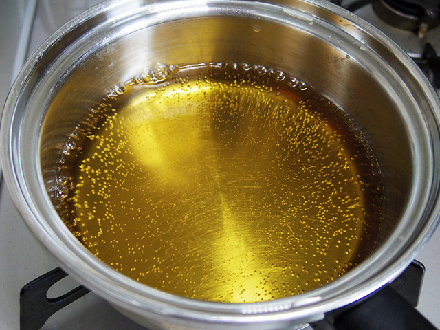 3.70〜180度の揚げ油で野菜を素揚げしていきます。