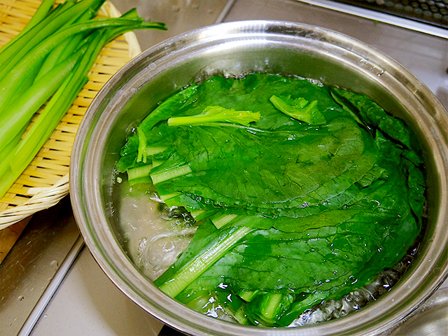 2.お湯で茎から順に茹でる。