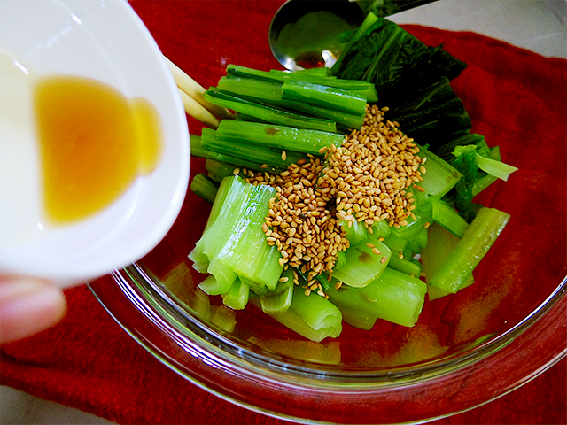 5.小松菜と*印の材料とを和えたらできあがり。