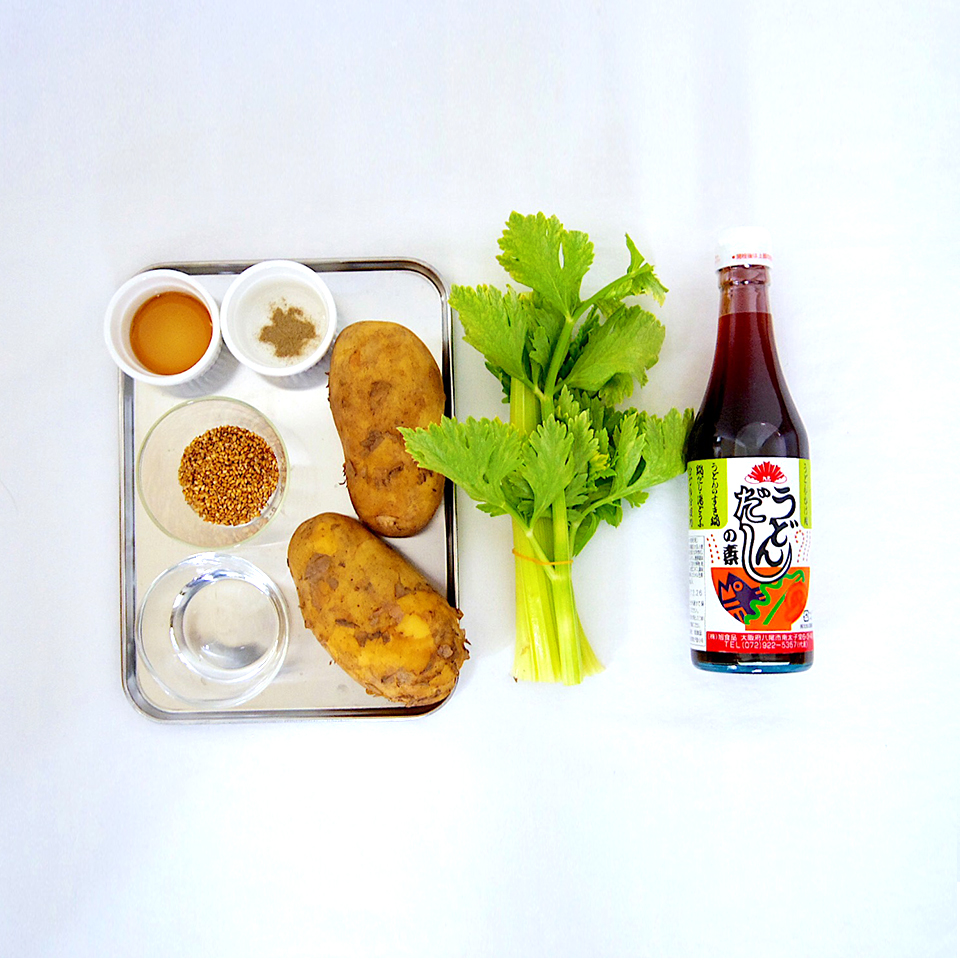 新じゃがとセロリの茎を太めの千切りにします。