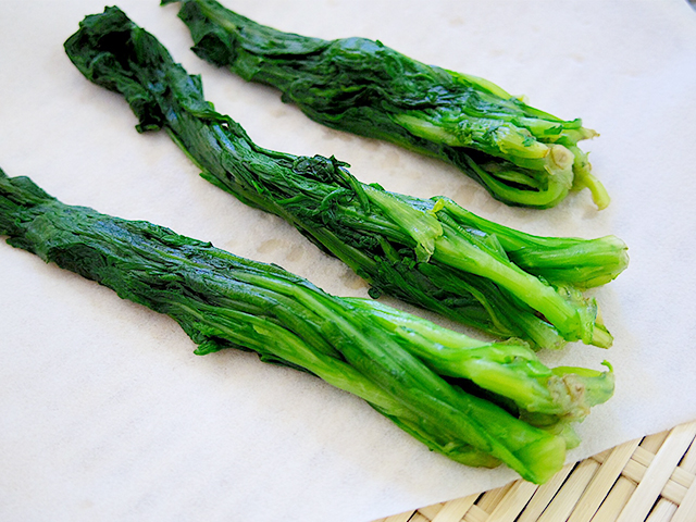 1.春菊をサッと茹で、水にさらしてしっかり水を切っておく。