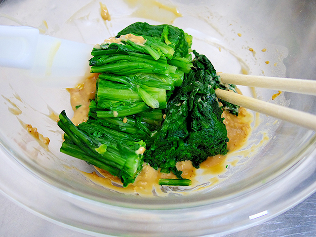 3.そこに3cm程に切った春菊を加えて和えたらできあがり。
