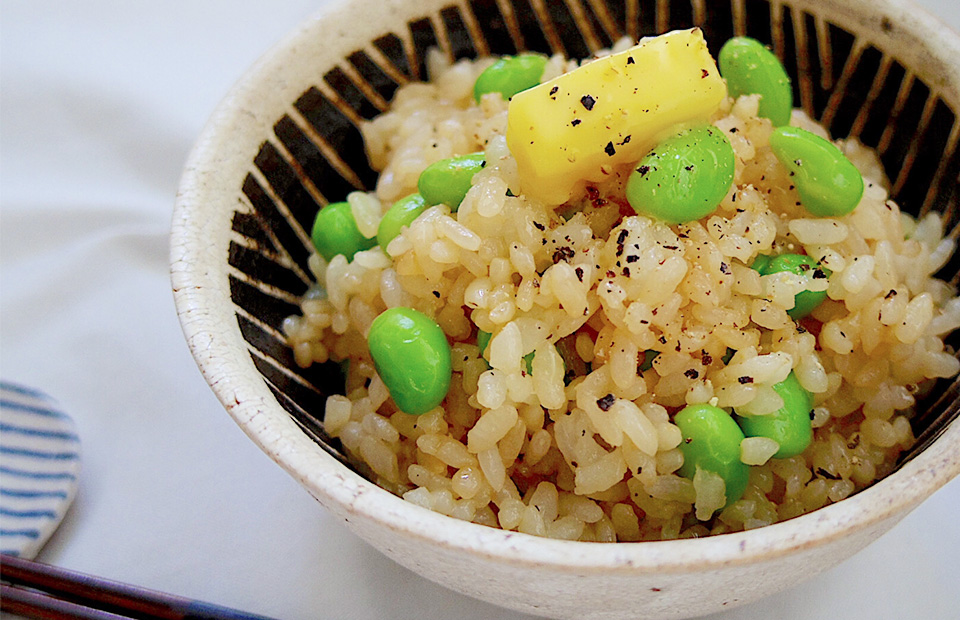 バターとそばつゆの素で和風まろやかな味♪枝豆バターご飯です♪(調理時間5分 / 1人前167kcal)