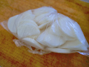 4.蕪をビニール袋から出して、水気を拭き取る。