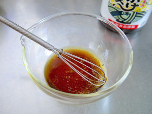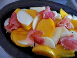 5.ボウルに蕪と柿、混ぜ合わせておいたドレッシングを加え混ぜ和える。