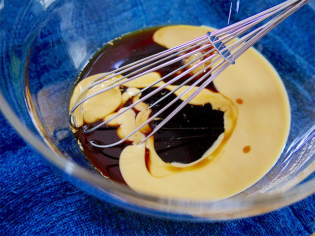 5.混ぜ合わせておいた濃厚胡麻ポンズソースをかけてできあがり。