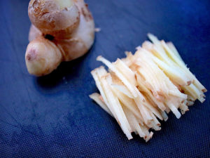 1.生姜はよく洗い皮ごと千切りにする。