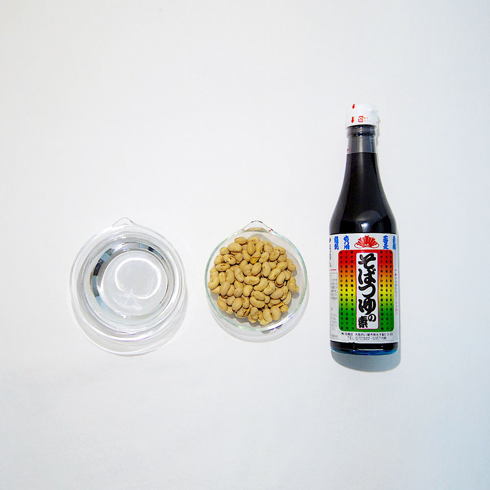 1.そばつゆの素と水を瓶の入れ混ぜておきます。