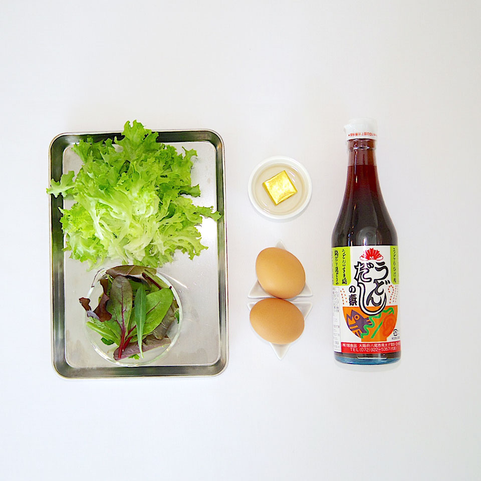 1.レタスは洗ったら水気をしっかり取り、食べやすい大きさに切り、ベビーリーフと合わせておく。