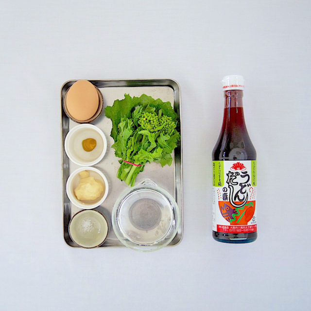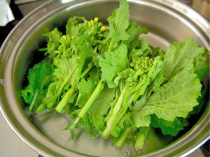 (菜の花→水300ml:うどんだしの素大2)