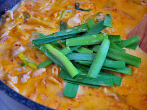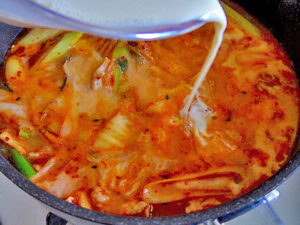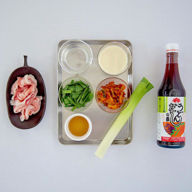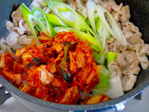 (キムチも大きいものは食べやすい大きさに切っておく。)
