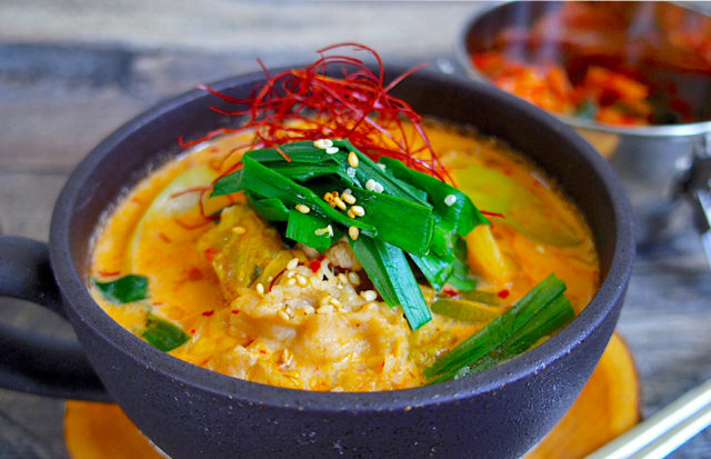 6.ニラを最後に加えてひと煮立ちさせ、胡麻油を加えたらできあがり。