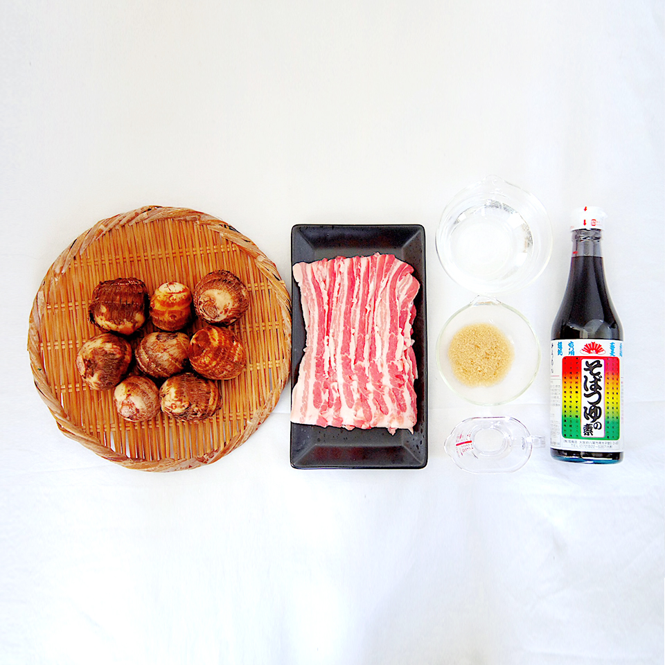 1.里芋は食べやすい大きさに切り、豚バラ肉は4~5cmに切っておく。