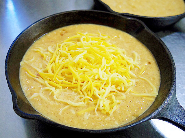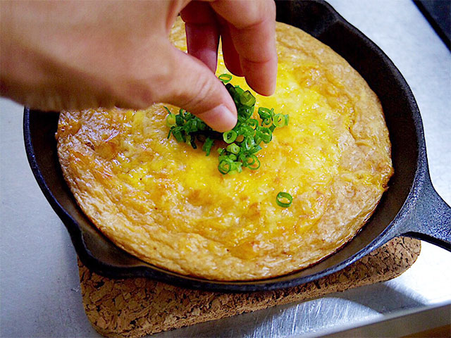 溶いた明太子と卵に、マヨネーズを混ぜあわせ耐熱皿に流し入れチーズを加える。