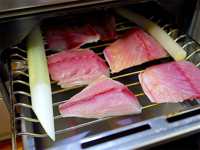 白ネギは半分に切りグリルかフライパンで焼きます。