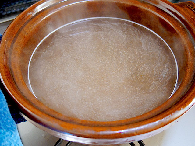 1.鍋に水と鶏ガラスープを入れて火にかけておきます。