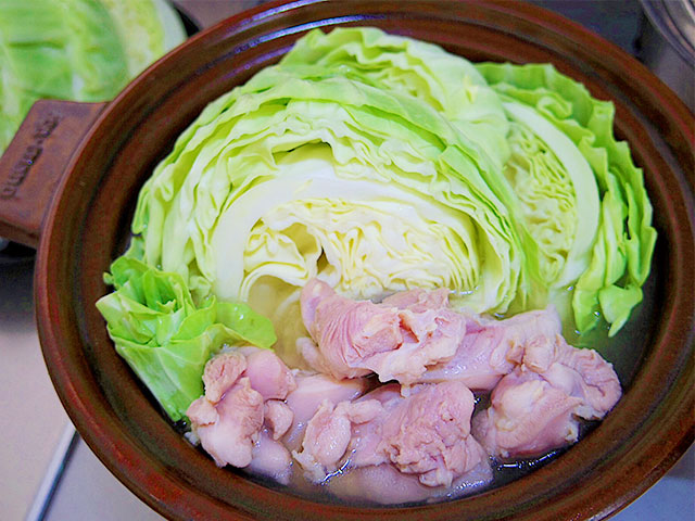 キャベツと鶏肉でさっぱりヘルシー!旭ポンズを使ったタレで楽しめる鶏キャベツ鍋です♪(調理時間20分)